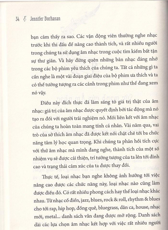 Mua tại TiktokMột cách bản năng, chúng ta đều biết âm nhạc có sức ảnh hưởng rất lớn, ở nó có gì đó thật kỳ diệu. Khi nghe bài hát đúng tâm trạng, bạn sẽ khóc hoặc cười, gõ nhịp chân hoặc chỉ thở ra mãn nguyện “à”. Âm nhạc kết nối tới thứ gì đó sâu thẳm trong chúng ta, thứ gì đó liên quan đến khả năng sáng tạo ra mọi điều ta khao khát. Tôi đang không chỉ nói về hội họa, âm nhạc hay văn chương, mà mọi sự sáng tạo của cuộc sống – làm ra một chiếc bánh hoặc dọn sạch một khu vực trong nhà bạn, hay thậm chí chỉ là tạo ra một cảm xúc, tốt hoặc xấu. Âm nhạc mang đến cho chúng ta một đường dẫn trực tiếp tới sức mạnh đó và giúp nó nở rộ theo cách gần như không thể lý giải được. Tôi đã nghe nói về thuật ngữ “liệu pháp âm nhạc” cách đây ít lâu, nhưng chưa bao giờ thực sự chú ý, thành thật mà nói, thậm chí còn gạt nó đi vì từ “liệu pháp” (làm thế nào một thứ tuyệt vời như âm nhạc lại bị quy thành liệu pháp – như phân tâm học hay gì đó). Sau đấy, tôi đã gặp Jennifer Buchanan. Cô là một chuyên gia trị liệu âm nhạc được đào tạo, nhưng có điều gì đó ở Jennifer khiến tôi ngay lập tức nghiêm túc chú ý. Trước cô, chưa từng có ai nói với tôi những điều như vậy về âm nhạc. Gần với những điều “không thể lý giải nổi” mà tôi luôn biết có tồn tại trong âm nhạc nhưng chưa bao giờ thật sự nắm bắt được. Rõ ràng là Jennifer ấp ủ một cuốn sách và nóng lòng được xuất bản nó. Tôi chưa đọc cuốn sách nào về “liệu pháp âm nhạc”, nhưng tôi có thể nói rằng cô ấy đang cố gắng mang đến thứ gì đó chưa từng được trình bày đầy đủ trên giấy. Tôi nói với cô ấy rằng khoa học về âm nhạc không phải là điều khiến chủ đề này hấp dẫn tôi. Khi cô ấy bắt đầu kể cho tôi nghe các câu chuyện của mình, tôi biết rằng những câu chuyện đó đã hàm chứa câu trả lời: đó là những gì âm nhạc có thể làm với một người đang cần được cổ vũ, giảm căng thẳng, hay thậm chí đang tìm cách kết nối trở lại với thế giới. Bốn năm đã trôi qua kể từ lần đầu tiên tôi gặp Jennifer và hai năm kể từ khi chúng tôi xuất bản ấn phẩm đầu tiên của cuốn sách này. Sau khi đọc một số bản nháp sơ bộ, tôi đã gợi ý cho cô về cách làm nổi bật thông điệp. Sau khi đọc cuốn sách của cô, tôi đã suy nghĩ rất nhiều về âm nhạc và việc không hiểu sao cuộc sống của tôi lại thiếu đi âm nhạc nhiều đến thế. Tôi yêu âm nhạc, tôi lớn lên với việc chơi piano. Tôi có thể chọn bất kỳ nhạc cụ nào, trừ đàn guitar vì một vài lý do, và học chơi khá nhanh. Nhưng vài năm trước, tôi không còn nghe nhạc thường xuyên nữa. Tôi không còn bật radio trong xe hơi vì thích sự im lặng. Là một tác giả, đôi khi tôi tập trung hoàn toàn vào những suy nghĩ của mình. Tôi nói về việc “nghe” một cuốn sách trong đầu trước khi viết nó ra, vì vậy có thể nói rằng tôi “viết” liên tục, bất kể tôi đang làm gì khác. Nhưng kể từ khi đọc bản nháp đầu tiên của cuốn sách này, tôi đã có chút áy náy với ý nghĩ mình không còn nghe nhạc nhiều như trước nữa, và chắc chắn tôi đã không nghe bất cứ thứ gì có thể chắp cánh cho mình. Tôi có một cô con gái đang học tiểu học nên chúng tôi thường xuyên nghe nhạc pop, nhưng các thể loại khác thì không nhiều lắm. Rồi một buổi sáng Chủ nhật, tôi từ cửa hàng tạp hóa trở về nhà. Người cha yêu dấu của tôi vừa qua đời khoảng ba tuần trước đó; tôi ngập ngụa trong công việc, và không hề vui vẻ – tôi chỉ làm việc nhà, đảm bảo gia đình mình được chăm sóc đầy đủ. Khi bước vào cửa, tôi nghe thấy chất giọng tuyệt vời của James Taylor đang hát “Sweet Baby James”. Chúng tôi có một cái máy nghe nhạc nhỏ trong bếp, không phải là đồ xịn gì và chồng tôi đã bật đĩa Những bài hát hay nhất của James Taylor mà anh tìm được tại một cửa hàng từ thiện ngày hôm trước. Khi nghe những giai điệu của bài hát đó, tôi đã suýt khóc. Đó là thứ hay nhất mà tôi được nghe trong suốt một thời gian dài. Vì bất cứ lý do gì, buổi sáng hôm đó, giai điệu ấy chính là âm nhạc “của tôi”, và thông điệp từ cuốn sách của Jennifer bừng lên trong tôi. Khi tôi cần một thứ gì đó êm dịu dễ chịu, thì nó đây: James Taylor đang hát cho tâm hồn tôi. Ngay lập tức tôi cảm thấy thư giãn hơn. Tôi bỏ túi đồ tạp hóa trên tay xuống và bắt chồng khiêu vũ với mình ngay giữa bếp. Sau suốt một thời gian dài tôi mới cảm thấy kết nối với cuộc sống nhiều đến thế. Đó là một kỷ niệm tôi sẽ trân trọng. “Ứng dụng âm nhạc để thay đổi cuộc sống” là cuốn sách về việc sử dụng âm nhạc có chủ đích. Bạn sẽ thấy rõ điều này hơn trong các trang tiếp theo, nhưng tôi chắc chắn, theo bản năng, bạn vốn đã biết điều đó nghĩa là gì rồi. Đó là việc tìm kiếm âm nhạc phù hợp cho bất kỳ tình huống nà