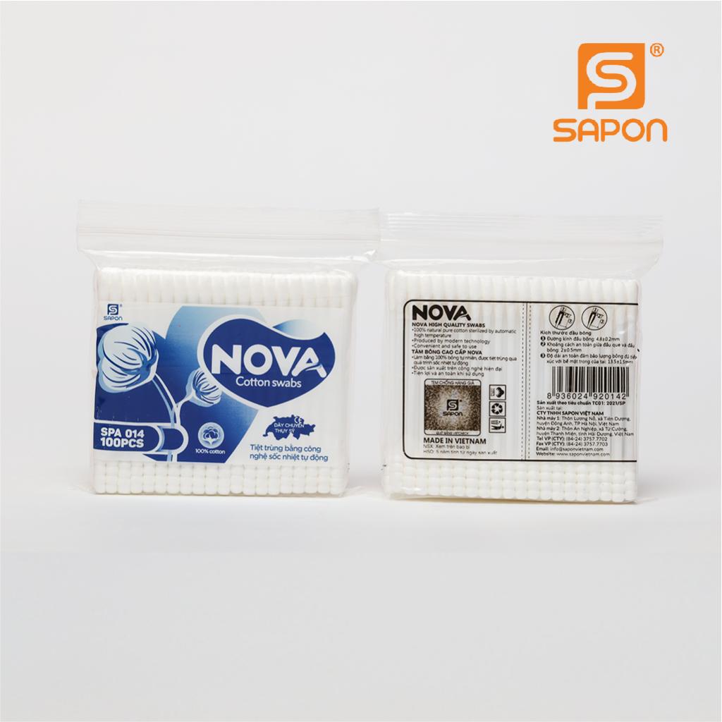 Mua tại Tiktok- ĐẶC ĐIỂM SẢN PHẨM 1.1. Tiệt trùng bằng công nghệ sốc nhiệt tự động, kháng khuẩn vượt trội Toàn bộ phần bông và thân que của Tăm bông Nova được tiệt trùng bằng công nghệ sốc nhiệt tự động nhập khẩu từ Thụy Sĩ, mang lại khả năng kháng khuẩn vượt trội, an toàn khi sử dụng. 1.2. 100% bông cotton thuần tự nhiên, mềm mại, thấm hút nhanh Phần đầu bông được sản xuất từ nguyên liệu 100% bông cotton, cho khả năng thấm hút tối ưu. Sản phẩm thấm hút nhanh chóng chất lỏng, dịch bẩn trong quá trình vệ sinh cá nhân hay vệ sinh vật dụng, giúp bề mặt cần vệ sinh được khô ráo, ngăn ngừa nấm mốc và vi khuẩn phát triển. 1.3. Dây chuyền sản xuất hàng đầu thế giới, nhập khẩu từ Thụy Sĩ Đây là dây chuyền tiên tiến bậc nhất hiện nay trong lĩnh vực sản xuất tăm bông. Sản phẩm làm ra có chất lượng cao và đồng đều. Toàn bộ quá trình sản xuất được thực hiện khép kín, đảm bảo vệ sinh và độ an toàn cho sản phẩm. 1.4. Tích hợp thông minh với 2 kiểu đầu bông trong 1 sản phẩm Tăm bông Nova được thiết kế thông minh với 2 đầu bông khác biệt: 1 đầu hình tròn, 1 đầu dạng xoắn. Đầu bông tròn có tác dụng thấm hút nhanh. Đầu bông còn lại có dạng xoắn với các rãnh nhỏ, rất hiệu quả trong việc tiếp xúc và giữ chặt chất bẩn vào bông, mang lại hiệu quả vệ sinh tối ưu. 1.5. Thiết kế an toàn khi sử dụng