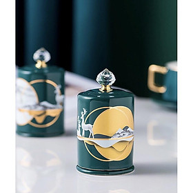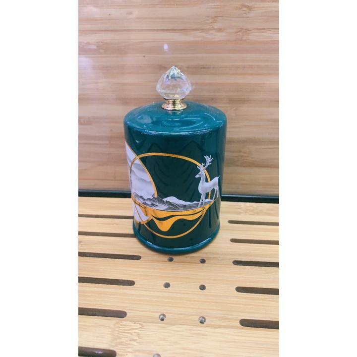 ✨LỌ ĐỰNG TĂM SỨ CAO CẤP XANH CỔ VỊT HỌA TIẾT HƯƠU NẮP ĐẬY ĐÍNH DÁ
