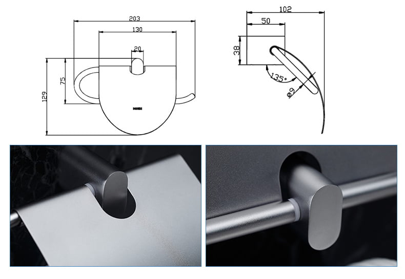 Thiết kế mềm mại, uyển chuyển tạo nên sự sang trọng, nhẹ nhàng cho phòng tắm của bạn. Chất liệu bằng hợp kim nhôm có tính chịu lực, chống oxi hóa, chịu nhiệt tốt nên tuổi thọ của sản phẩm cao. Bề mặt xử lý bằng phun cát phản quang với các hạt nhỏ trên bề mặt, sờ mềm mại và tinh tế, tránh xa vết nước, không để lại dấu vân tay và dễ lau chùi