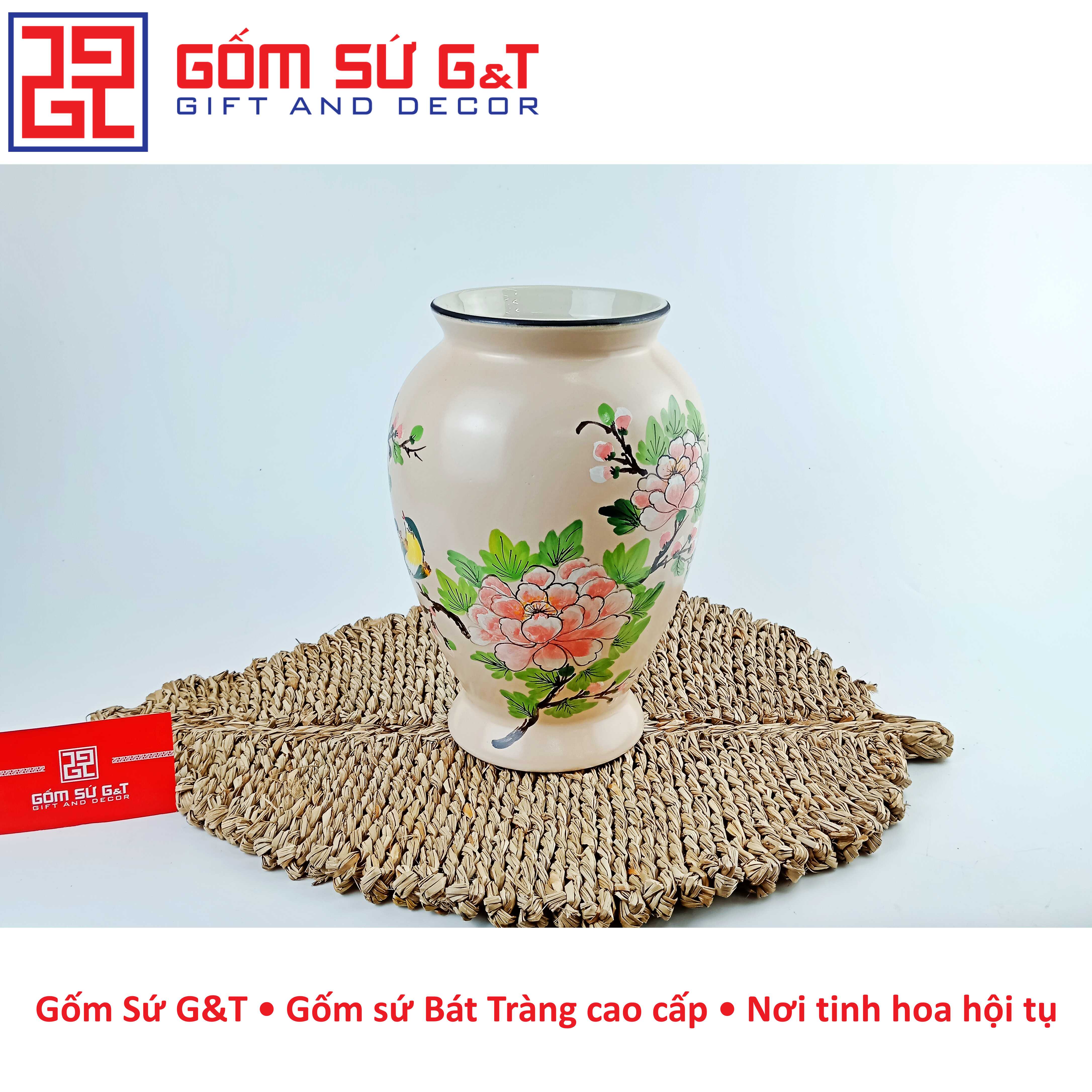 ✨Lọ hoa dáng đùi dế vẽ chim hoa phù dung Gốm Sứ G&T