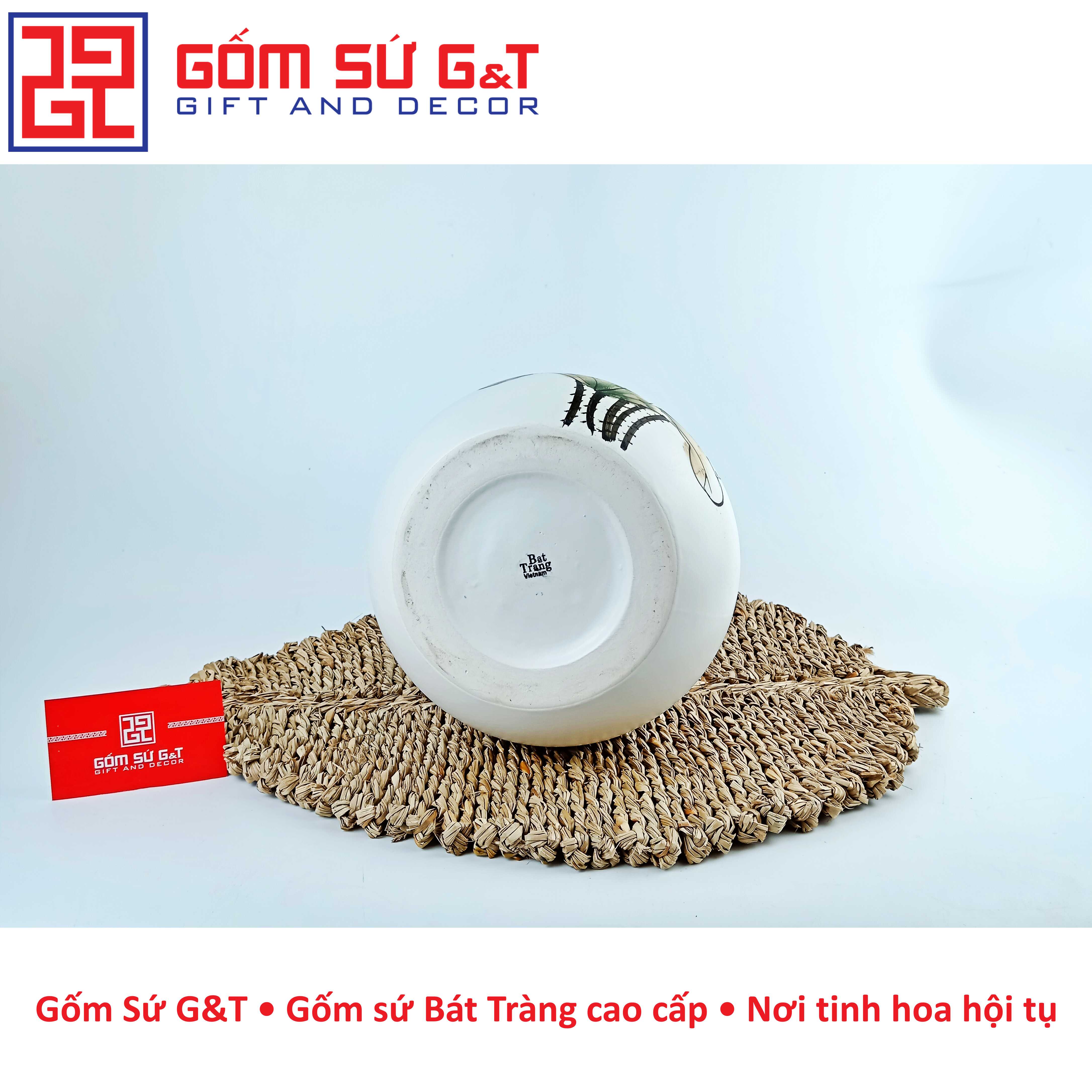 Bình hoa cao cấp Bát Tràng, hàng chuẩn loại 1, dáng chum họa tiết đắp nổi được thực hiện thủ công 100% bởi bàn tay lành nghề của các nghệ nhân làng nghề. Sản phẩm