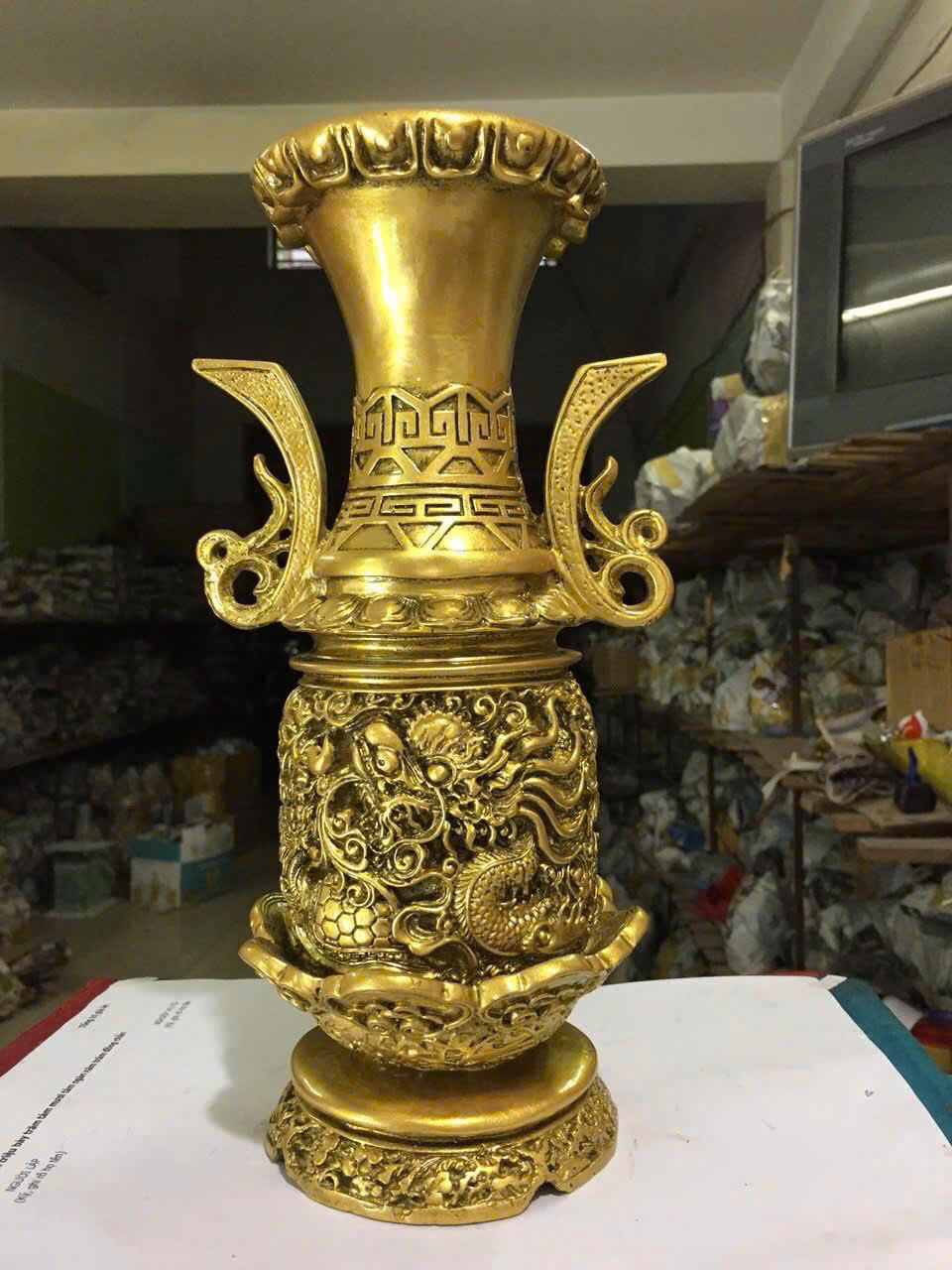Mua tại Tiktok*** Quý khách hàng vui lòng chọn sản phẩm nhà bán TUNDO để nhận được sản phẩm đúng với chất lượng *** Lọ hoa họa rồng size nhỏ CTVD1 16 x 13 x 29.2cm mạ