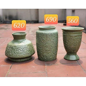 Xuất Xứ : Bát Tràng Sản phẩm gồm set 3 lọ dùng để cấm hoa hoăc trang trí ở gốc kệ làm nổi bậc không gian sống Chiều cao : 15 _ 19 _ 23