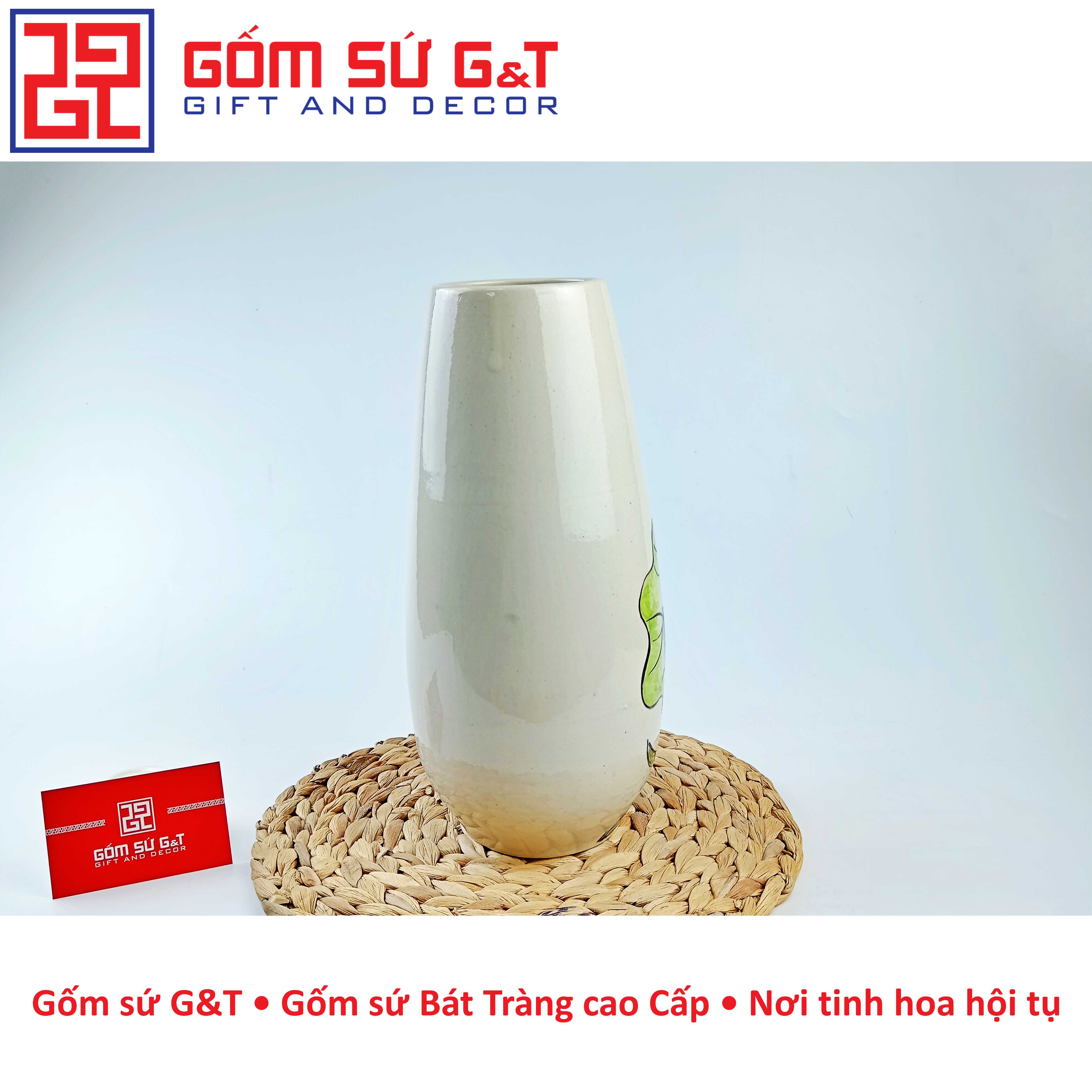 Lọ hoa dáng đùi dế vẽ cam Bát Tràng là một sản phẩm thủ công độc đáo, được làm từ chất liệu gốm sứ cao cấp. Với thiết kế tinh tế và đa dạng về