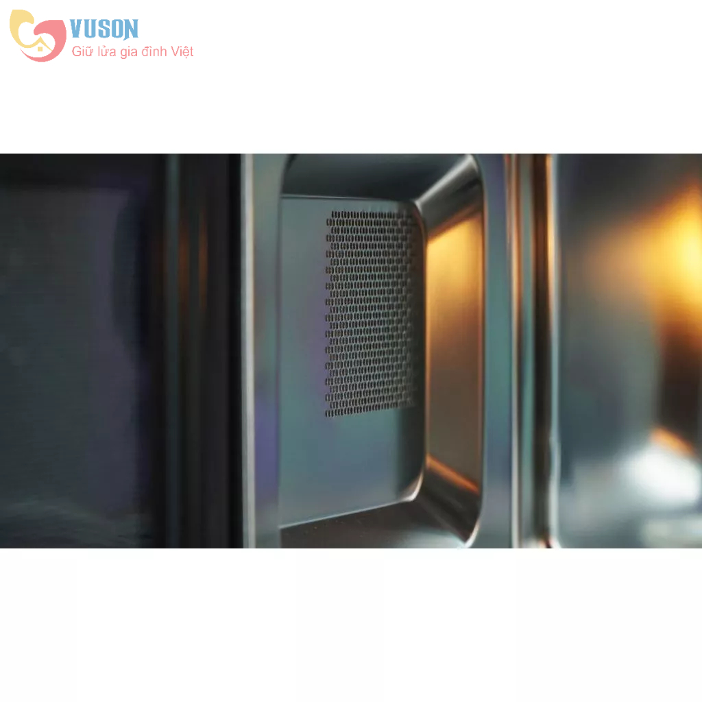 Mô tả sản phẩm • Lò vi sóng âm tủ kết hợp nướng thân inox • Dung tích 25L • Màn hình hiện thị LCD • Hệ thống điều khiển phím bấm điện tử •
