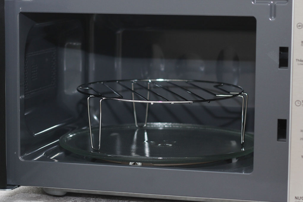 Lò vi sóng có 5 mức công suất khác nhau, trong đó công suất vi sóng là 800W và công suất nướng là 1000W giúp bạn hâm nóng và nướng chín thức ăn một cách nhanh chóng, dễ dàng.