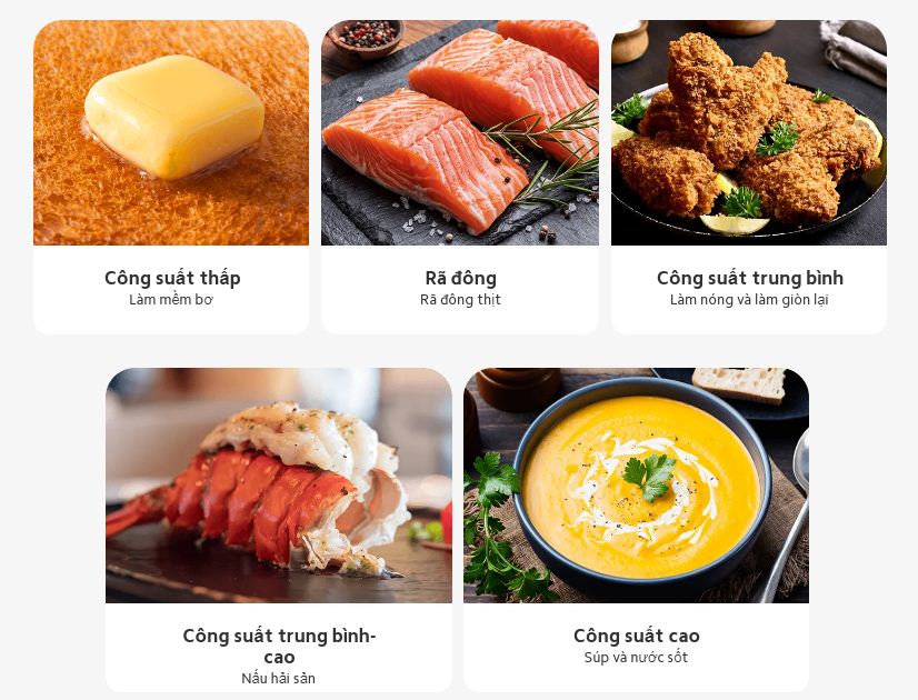 Bạn có thể điều chỉnh công suất theo từng nguyên liệu để hương vị của chúng được tỏa ra một cách chính xác. Với nhiều chức năng, lò vi sóng sẽ nhanh chóng trở thành công cụ không thể thiếu trong bếp nhà bạn.