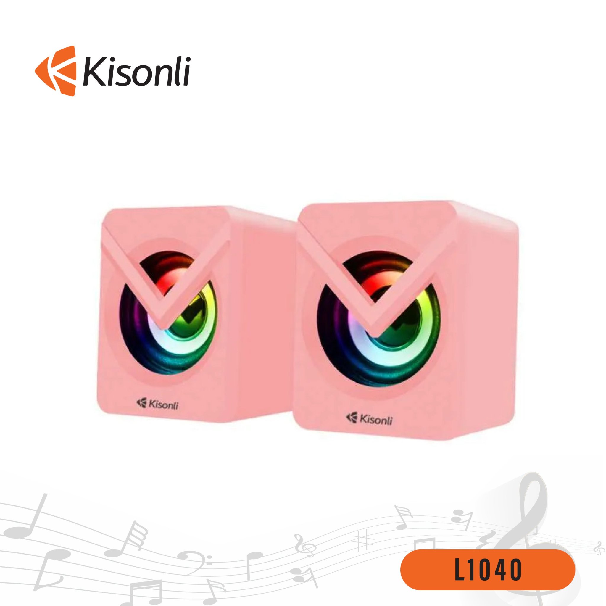 Loa Vi Tính 2.0 mini Kisonli L-1040 Led RGB Đổi Màu Hồng Siêu Cute Nghe Nhạc Cực Hay