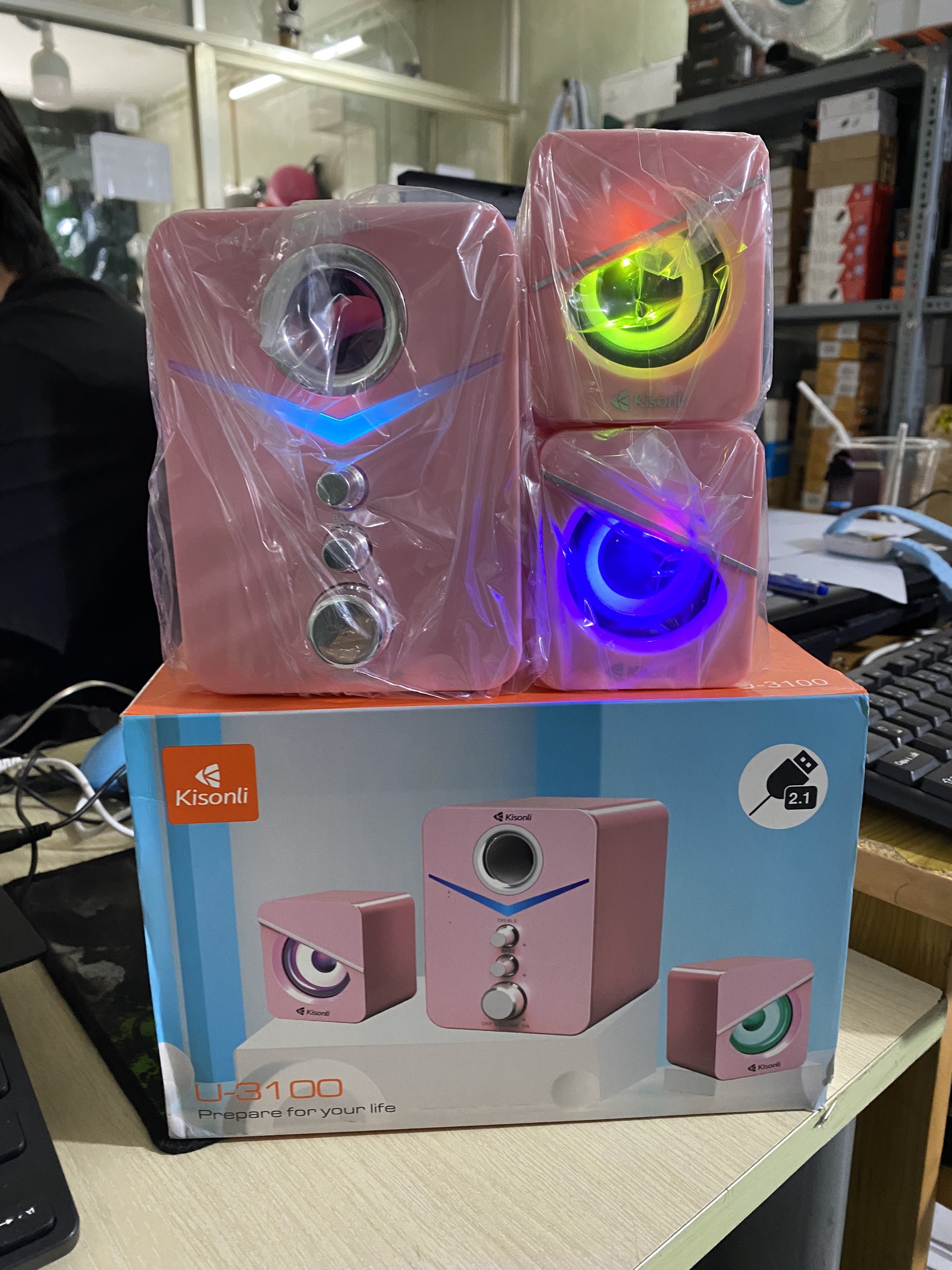 ✨Loa 2.1 Kisonli U-3100 Pink LED - HÀNG CHÍNH HÃNG