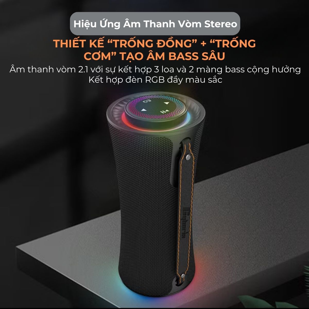 ️ Trang bị công suất tổng 80W với hệ thống 2.1, gồm 1 loa bass 50W (66mm) kèm 2 loa treble 15W, tạo hiệu ứng âm thanh vòm lan tỏa.