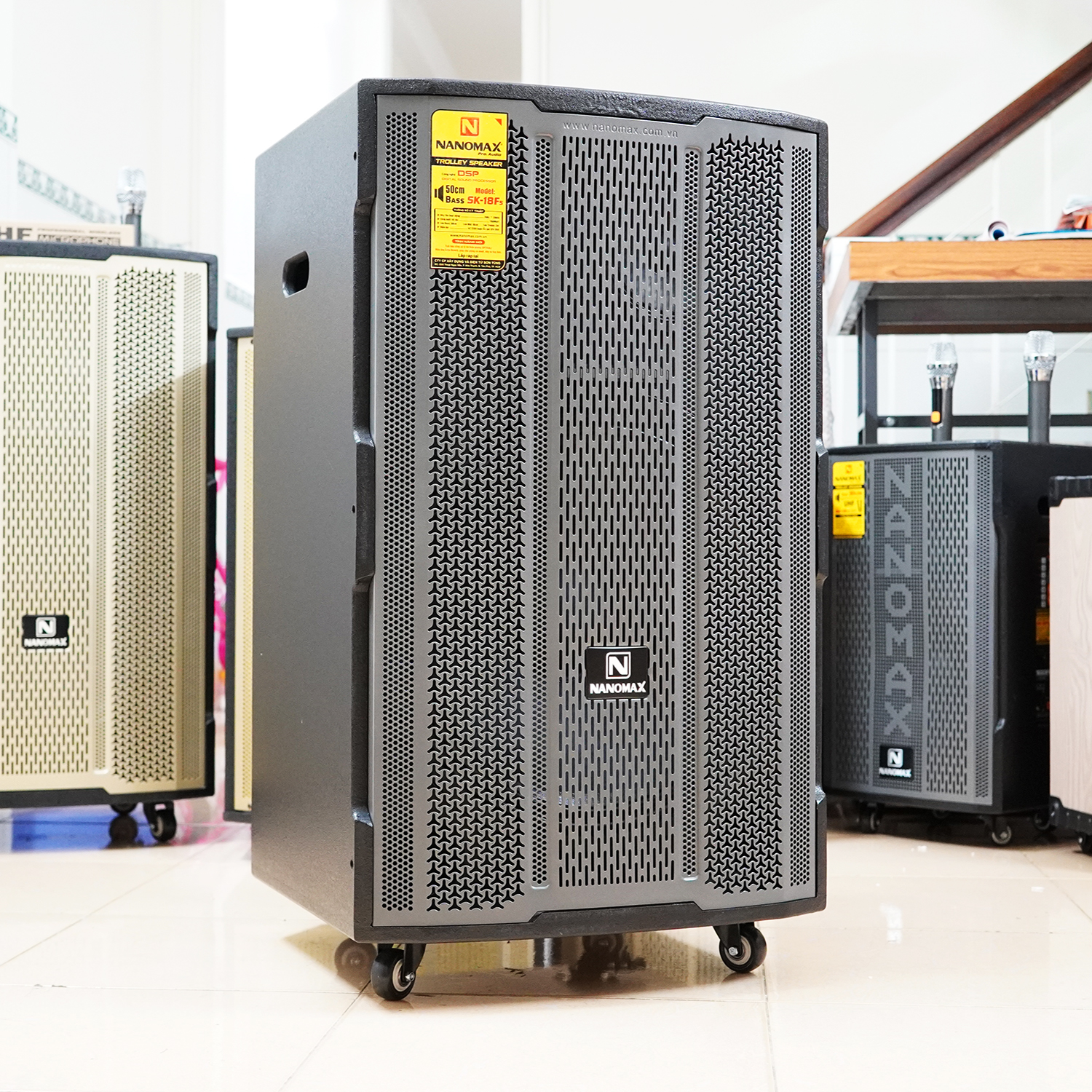 Loa kéo Nanomax SK-18F5 lưới xám là dòng loa karaoke công nghệ tiên tiến 2022 có Bass 5 tấc 50cm, công suất 1500w, sở hữu 3 đường tiếng với chiều cao đến 89cm. Nanomax SK-18F5 thực sự là mẫu loa kẹo kéo đẳng cấp, đốn hạ mọi đối thủ, sở hữu những công nghệ vượt trội và ưu việt mà bất kì ai cũng mơ ước.