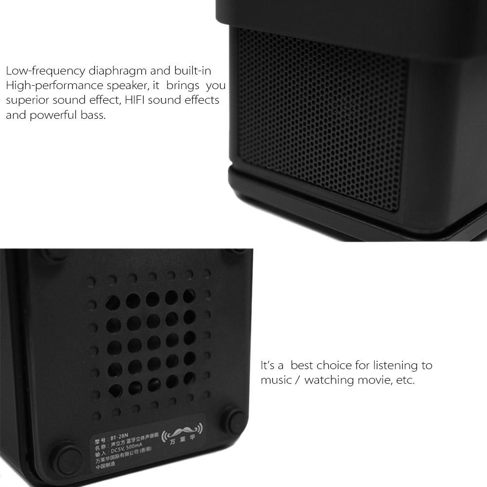 Description: This BT4.2 wireless speaker is compatible with almost all BT devices, It brings you music enjoyment, compact and convenient body, simple and elegant appearance, and decorating the room. Features: BT4.2 can realize high-speed transmission,