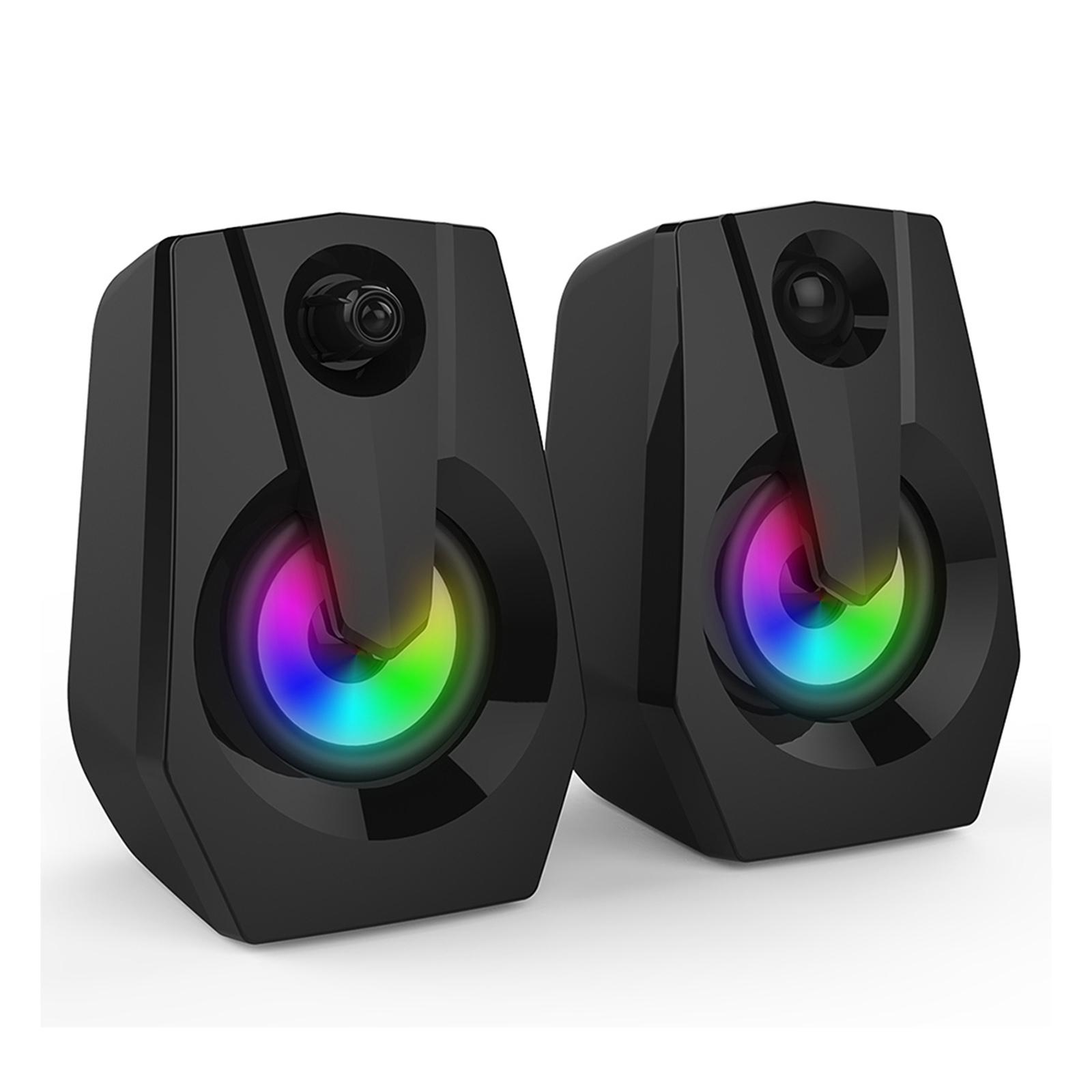 Features: Comes with 2*5W double horns, surround sound and the deep bass matched, bringing you high-quality music. Compatible with computer, mobile phone, TV, tablet, game consoles and other 3.5mm audio devices. Independent volume knob, convenient