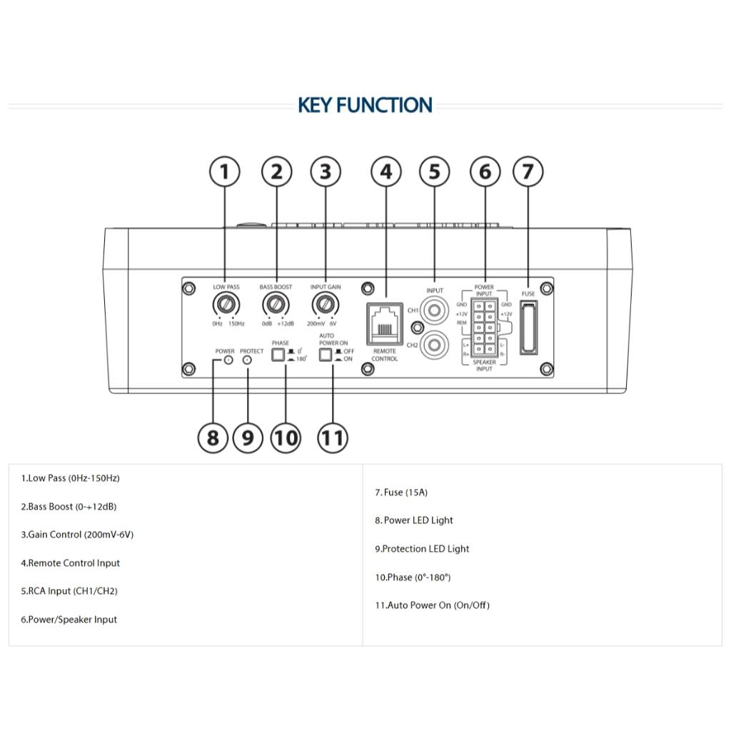 Độ nhạy âm thanh : Đầu vào loa (1.5V)/Đầu vào RCA (150mV)