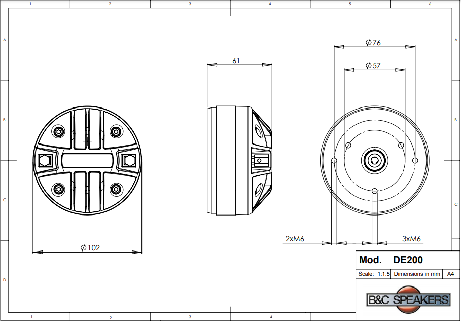 Loa Treble B&C SPEAKERS DE200 – Hàng Chính Hãng Xuất xứ: Italia Sử dụng họng 1" ( HỌNG ME 45) Voice coil aluminium 44mm (1.7") Công suất: 100w Công suất đỉnh 200 W