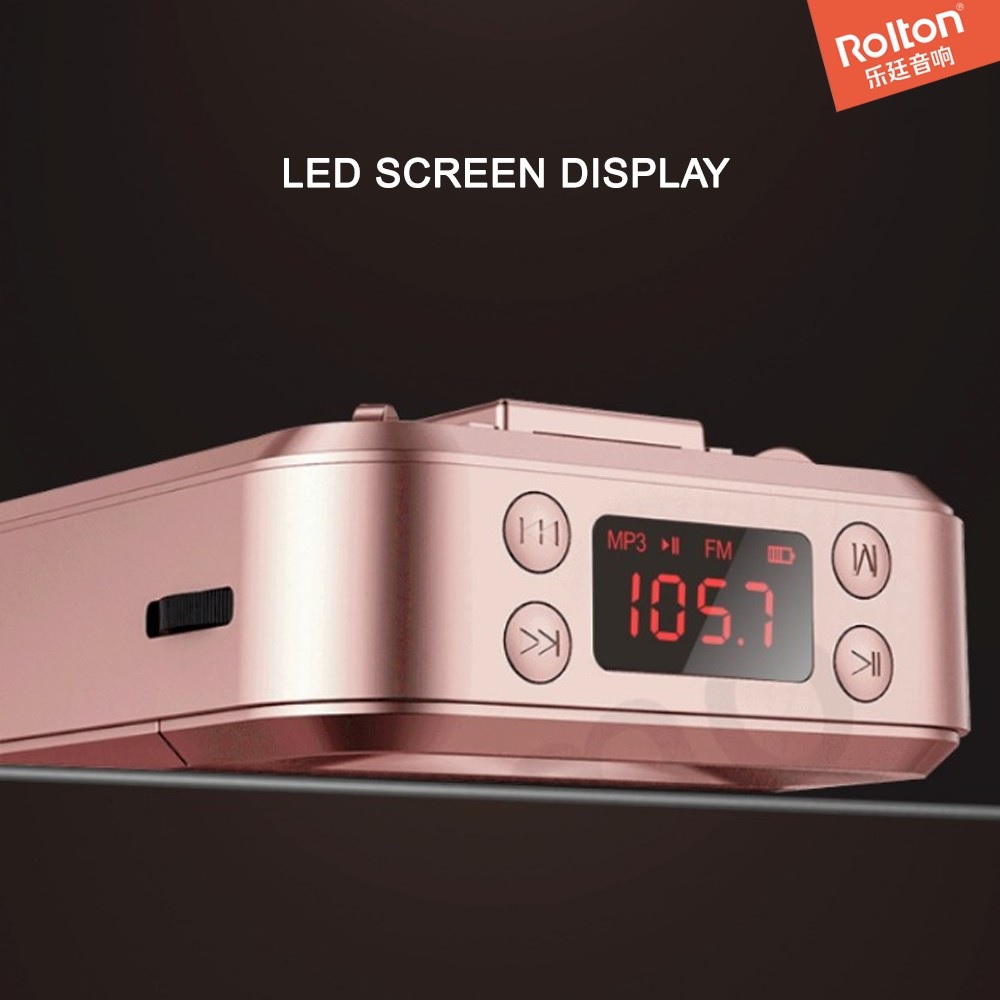 Model: Rolton K700 Công suất âm thanh: 5W (2 Ohm) Loại pin: TR-18650, 3.7V Pin: Tích hợp có thể sạc lại Bluetooth: Hỗ trợ Đài FM: Hỗ trợ (76-108 MHz) Thẻ TF: Hỗ trợ (Tối