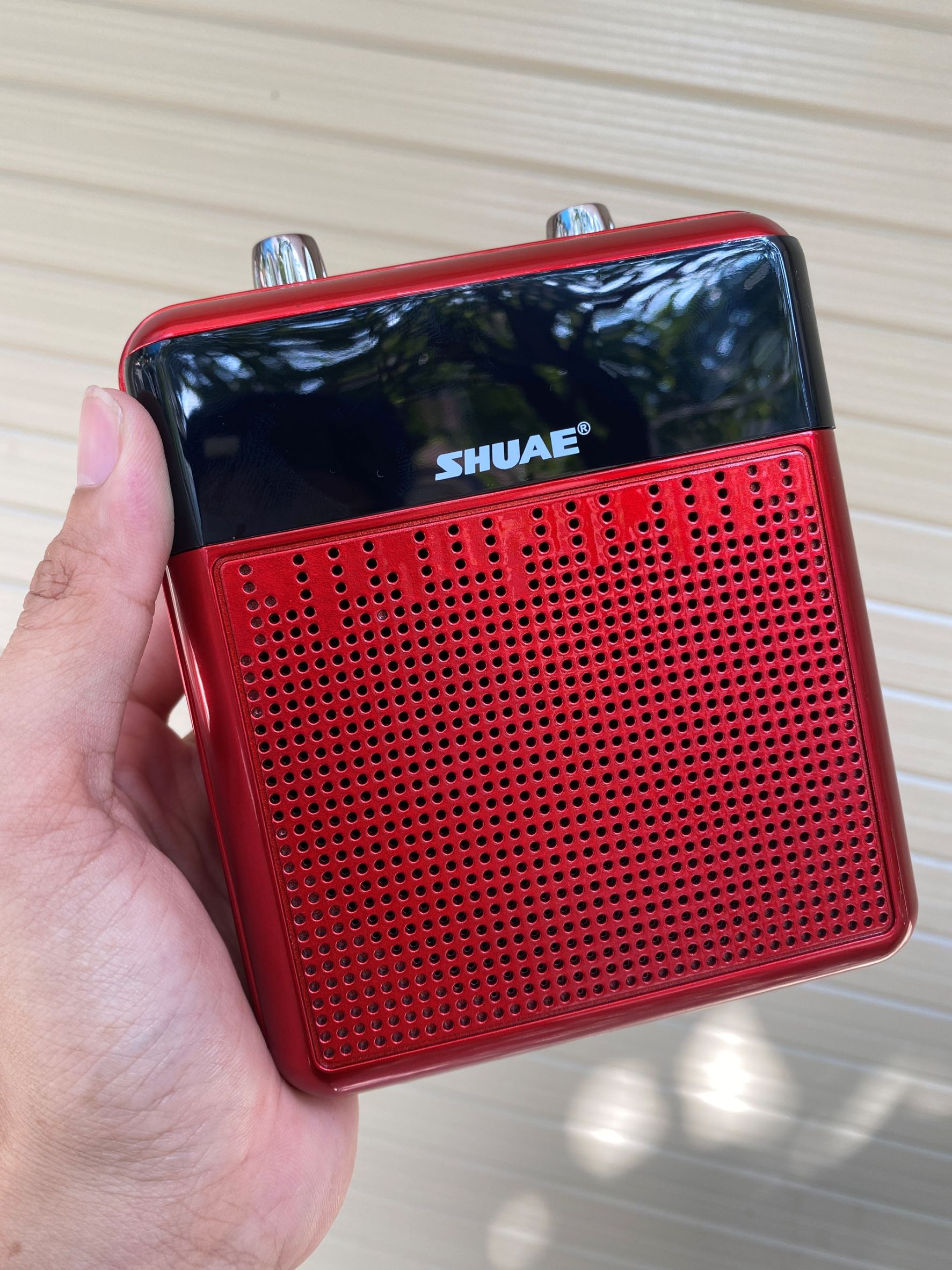 LOA TRỢ GIẢNG SHUAE SM-918 - MÁY TRỢ GIẢNG KÈM MICRO CÀI TAI KHÔNG DÂY - KẾT NỐI BLUETOOTH, AUX, USB, SD CARD, FM - CÔNG SUẤT 15W - CÓ ECHO HÁT KARAOKE DỄ DÀNG