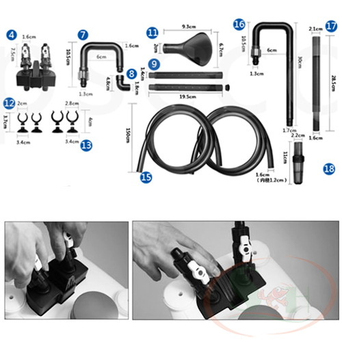 Bộ hút phân cặn Qanvee C300, C600, E3, E6 thay nước bể với thiết kế đơn giản dễ dàng lắp ráp, ống bóp tay mồi nước giúp việc vệ sinh hồ, hút phân cá tép