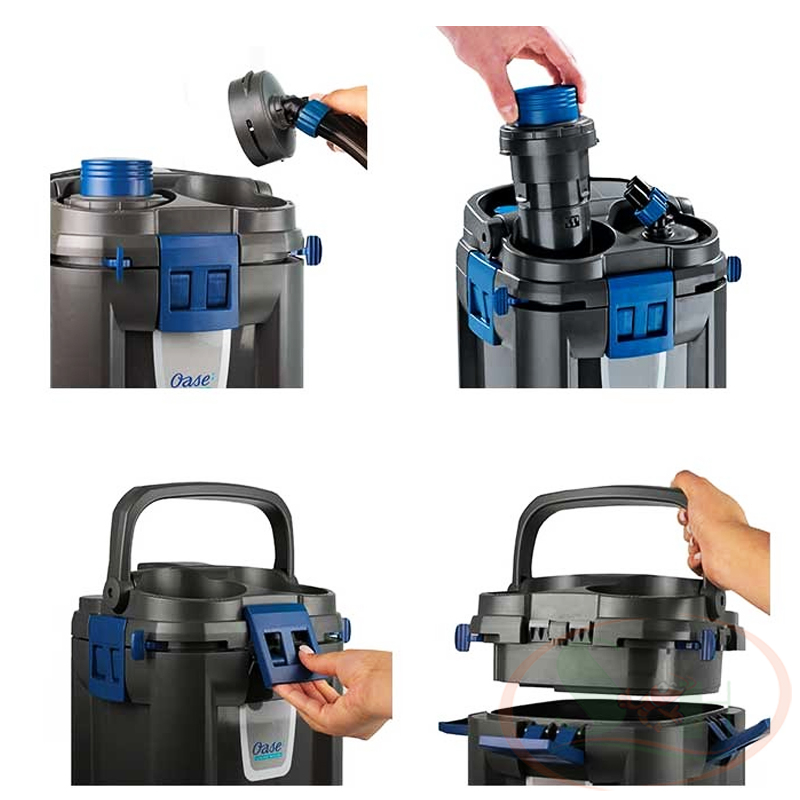 Lọc thùng Oase BioMaster Filter với các tính năng khóa an toàn được tích hợp trên tay cầm, bộ lọc sơ bộ và van một chiều trong bộ phận kết nối đầu vào / đầu ra, giúp không gây sự cố rò rỉ nước trong quá trình sử dụng. Ngoài ra có thể điều chỉnh lưu lượng dòng chảy ở nhiều vị trí trên bộ lọc.