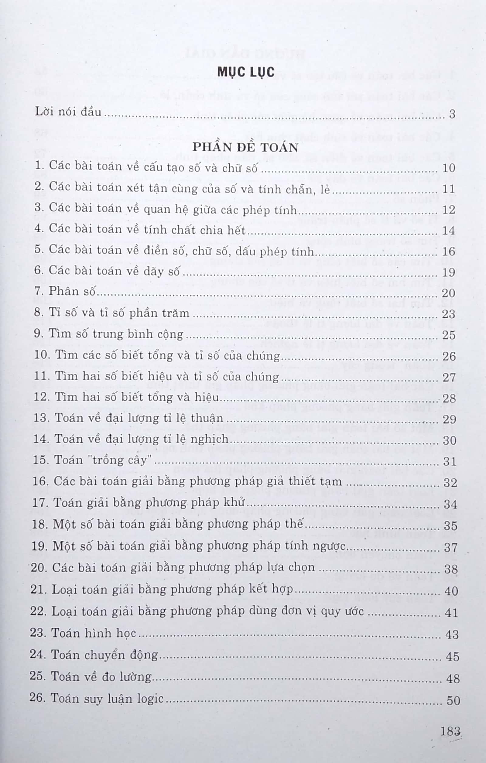 Mua tại TiktokSách này gồm 26 tiết đề cập đến 26 loại toán khác nhau. Đối với mỗi bài toán, bạn nên đọc thật kĩ đề, tìm hiểu cặn kẽ những đặc điểm của bài toán rồi tự mình suy nghĩ, cố hắng tìm ra lời giải, cố gắng tìm được nhiều cách giải và lựa chọn trong đó cách giải nào hay nhất. Sau đó mới tìm xem lời giải của bài toán mà sách đã nêu. Đa số các bài toán ở sách này đều là toán khó, trong đó có nhiều bài được rút ra từ các kì thi học sinh giỏi toán bậc tiểu học toàn quốc và các tỉnh, thành phố trong cả nước.