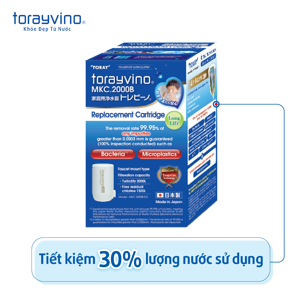 Lõi Lọc Thay Thế Torayvino MKC.2000B là lõi lọc nước mới nhất đến từ Nhật Bản cho các dòng thiết bị lọc nước tại vòi Torayvino với công suất lên đến 2000L, loại bỏ 13