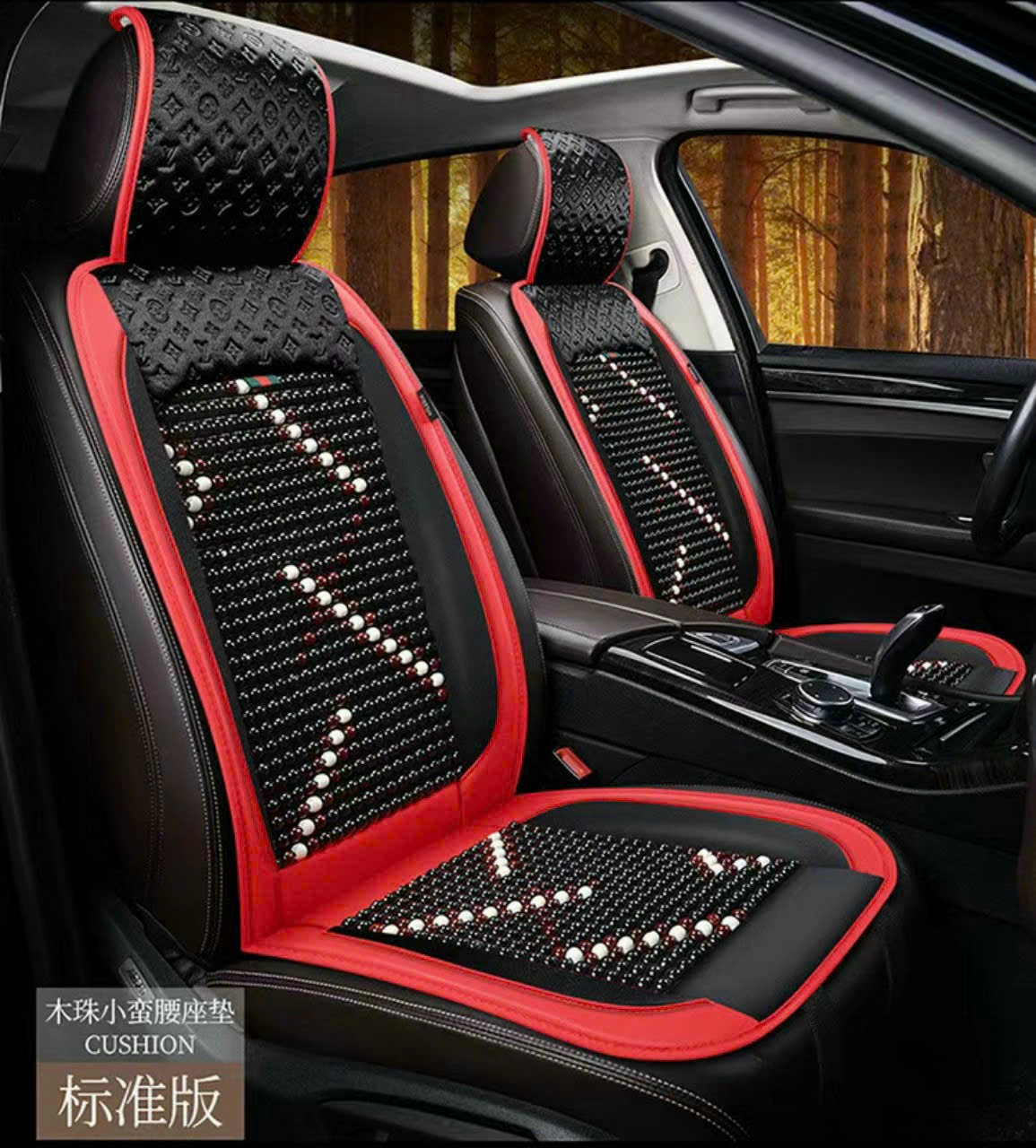 - Bộ lót ghế ô tô chất liệu da cao cấp kết hợp đệm nỉ, có đan hạt gỗ chống nóng, massage lưng