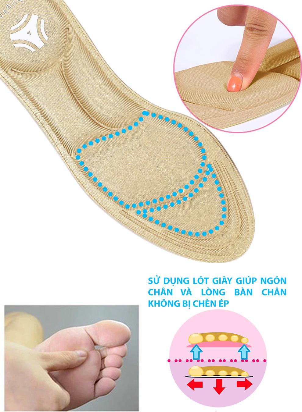 Miếng lót mũi giày cho nữ 4D hình bàn chân, xốp êm ái, thấm hút mồ hôi