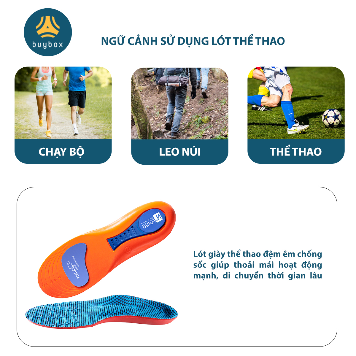 LÓT GIÀY THỂ THAO EVA CÔNG DỤNG NỔI BẬT Lót giày thể thao được thiết kế rãnh giảm sốc ở mặt dưới giúp giảm mỏi lòng bàn chân và gel chống thốn gót Lót giày