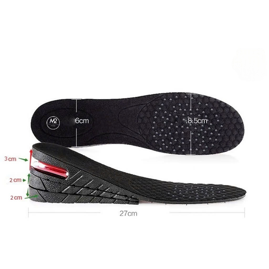 ✨Lót giày tăng chiều cao tăng 5cm chất liệu Đệm Khí êm chân, thoáng khí Nguyên Bàn - Đen