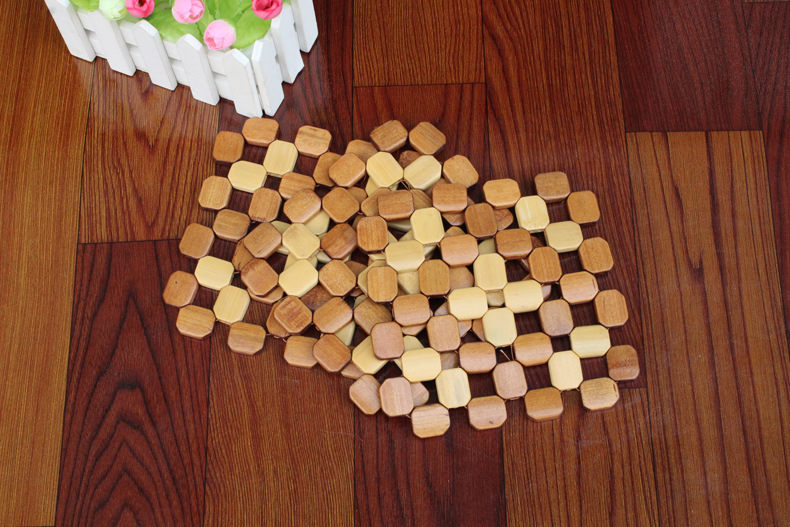 Miếng lót nồi hạt gỗ trúc kết xinh xắn góp phần làm đẹp không gian bếp, bàn ăn.