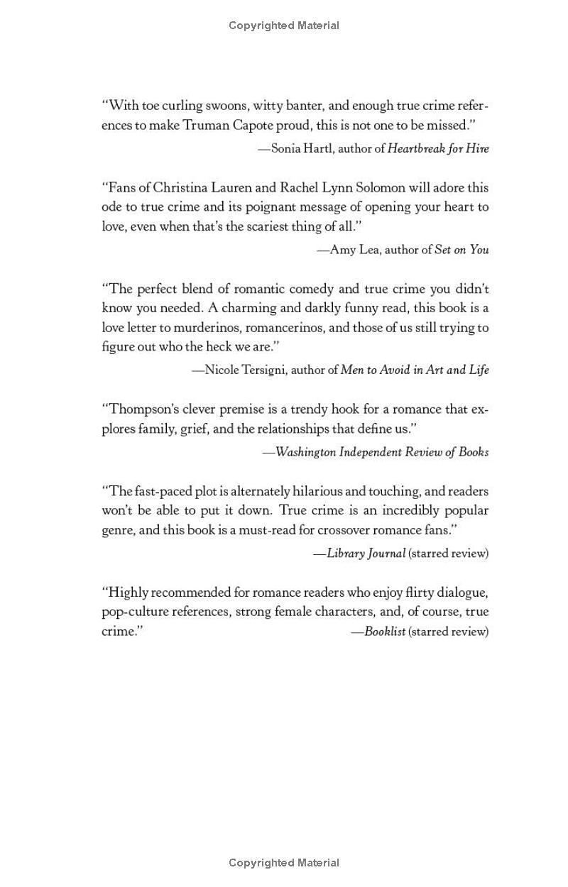 Turns out that reading nothing but true crime isn't exactly conducive to modern dating - and one woman is going to have to learn how to give love a chance when she's used to suspecting the worst.