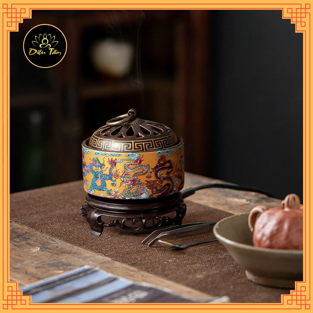 ✨Lư điện xông trầm hương lư xông trầm size to có hẹn giờ có bảo hành dùng để xông trầm, tinh dầu - Diệu Tâm lư điện rồng