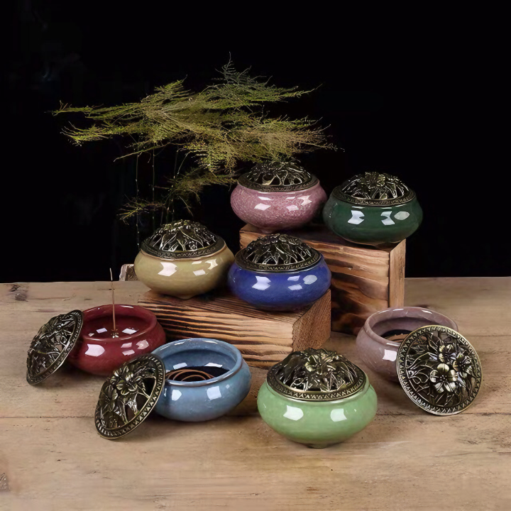 ✨Lư sứ đốt trầm hương, xông đốt phong thủy cao cấp- Tặng tri ân 1 hộp 40 nhang vòng trầm hương thắp bàn thờ , xông nhà, thanh lọc không khí, tẩy uế nhà cửa