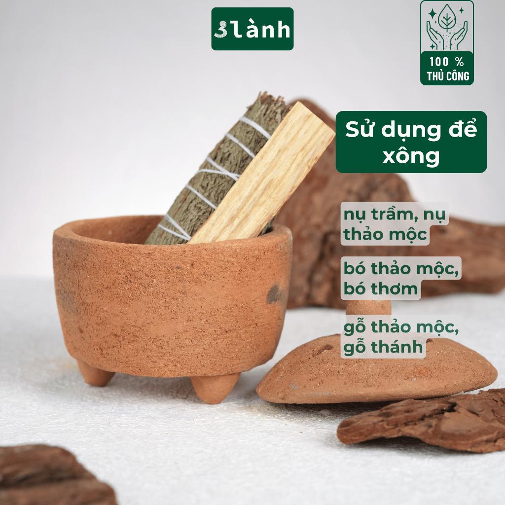✨Lư Xông Thủ Công Chăm Bằng Đất Sét 3 Lành - Dùng Đốt Nụ Trầm, Nụ Thảo Mộc, Bó Xông, Gỗ Thánh - Phong Cách Thuần Việt