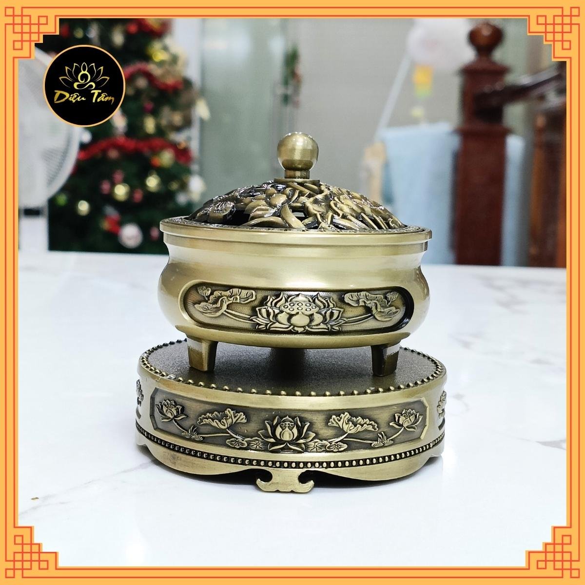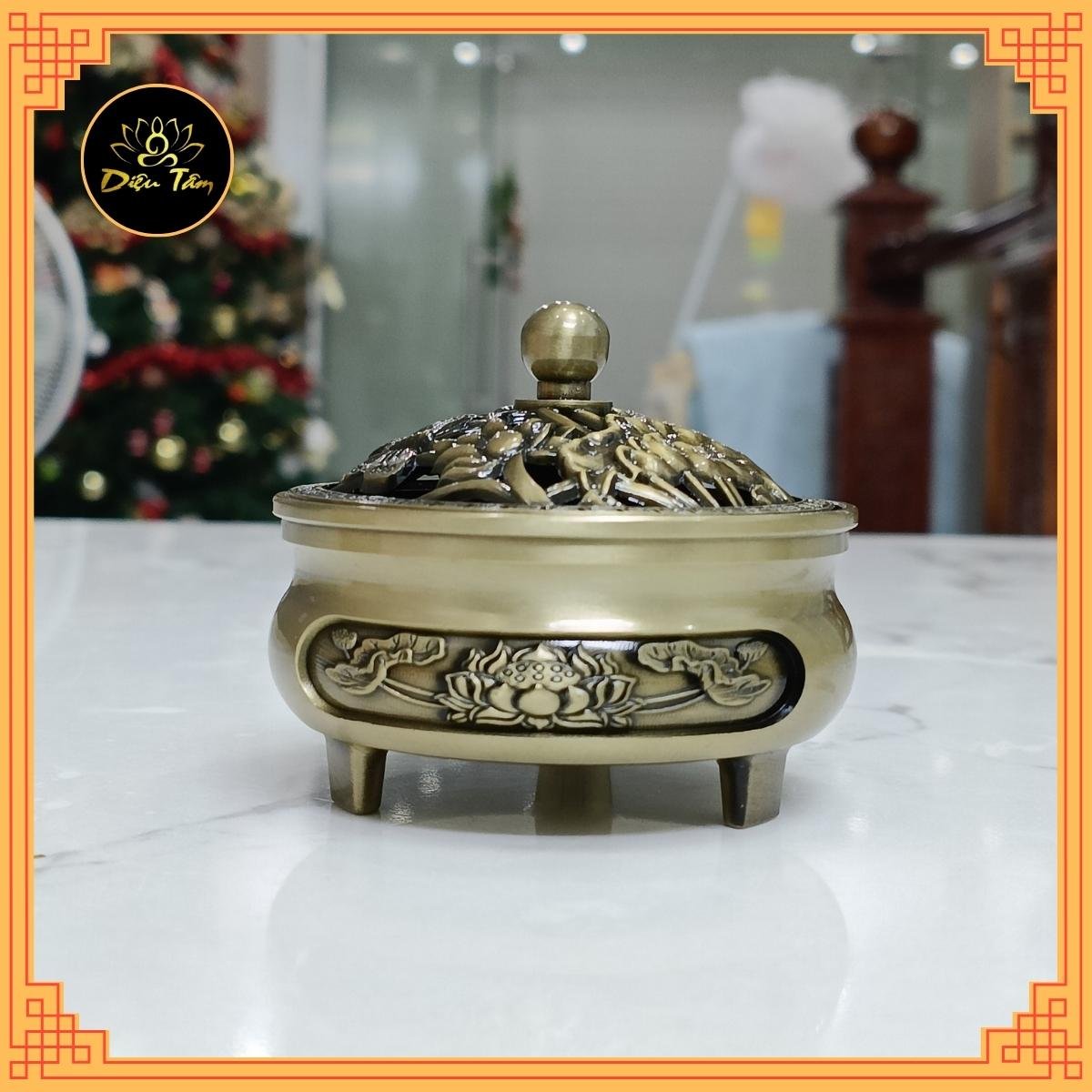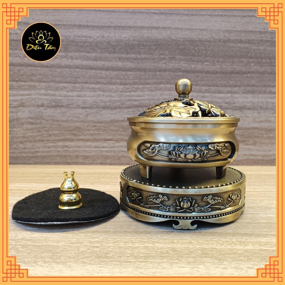 Lư xông trầm hương còn được gọi tên thông dụng khác như đỉnh xông trầm, đỉnh trầm, đỉnh đốt trầm, Đây được biết là tên gọi của một vật dụng được để đốt trầm hương và từ đó lan tỏa được hương trầm vào không gian sống. Việc đốt trầm được biết đến để giúp bạn thư giãn hoặc để tạo hương thơm cho gia đình của bạn Ngoài ra, trầm hương còn là một biểu tượng của đời sống tâm linh và phong thủy. Đây là một nét đẹp văn hóa truyền thống được lưu truyền qua bao đời nay. Đối với những người thờ Phật, ngoài việc thắp hương nén thông thường thì còn thường sử dụng thêm trầm hương để cúng dường Phật. Sử dụng trầm hương nụ hay trầm bột là tự nhiên nhất có thể. Và để đốt trầm viên hoặc trầm bột thì không thể thiếu “lư đốt trầm”. Tuỳ theo phong tục từng nơi mà “lư đốt trầm” cũng có nhiều hình dạng và chất liệu khác nhau. Theo truyền thống thì “lư đốt trầm” thường có hình bầu, trên có nắp, vừa có tác dụng đậy “lư đốt trầm”, vừa có tác dụng tản khói hương. Một số nơi ở Trung Quốc, Indonesia, Malaysia hay Ấn Độ, “lư đốt trầm” còn có hình hộp chữ nhật, dùng để đốt trầm cây không chân. Lư đốt trầm hương đẹp, chất lượng, cao cấp Dụng cụ đốt trầm hương tại Diệu Tâm shop có sẵn như: lư đồng xông trầm, lư điện xông trầm , bộ dụng cụ đốt trầm hương, và nhiều mẫu lư hương đốt trầm khác với đa dạng mẫu mã. Những mẫu lư hương đốt trầm hương đang được bán tại Diệu tâm shop đều được tuyển chọn từ những nguồn cung cấp lư xông trầm uy tín, tin cậy tại xưởng sản xuất đảm bảo giá thành rẻ nhất lư xông trầm chất lượng tốt nhất. Chính vì vậy quý khách hàng hoàn toàn có thể yên tâm về mẫu mã sản phẩm cũng như chất lượng. Lư xông đốt trầm hương giá cả cạnh tranh Lư xông trầm hương có mẫu mã, họa tiết hoa văn cổ điển