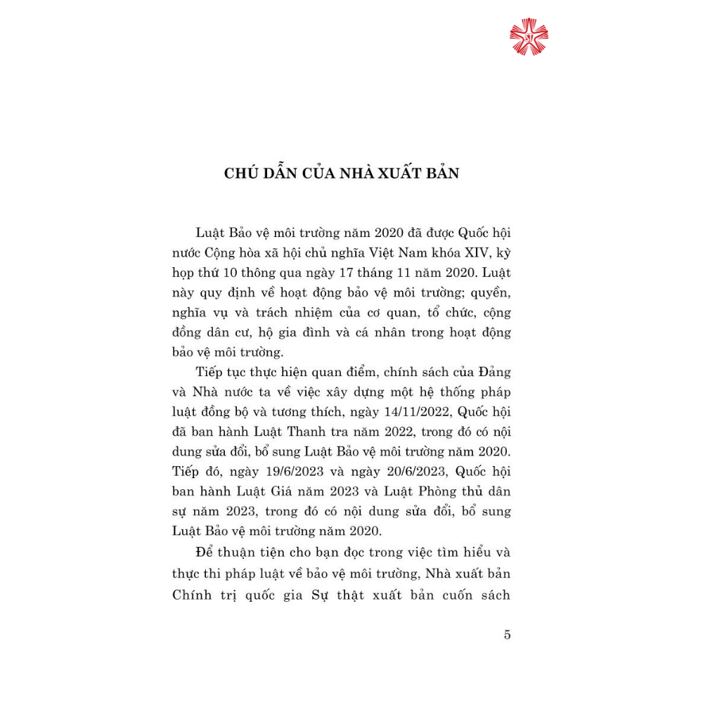 Cuốn sách “Luật Bảo vệ môi trường (hiện hành) (sửa đổi, bổ sung năm 2022, 2023)” cung cấp một cái nhìn toàn diện về những thay đổi và cập nhật trong luật pháp Việt Nam liên quan đến bảo vệ môi trường. Đây là một nguồn tài liệu quý giá cho các nhà hoạch định chính sách, học giả, và công dân quan tâm đến việc bảo tồn và cải thiện môi trường sống.