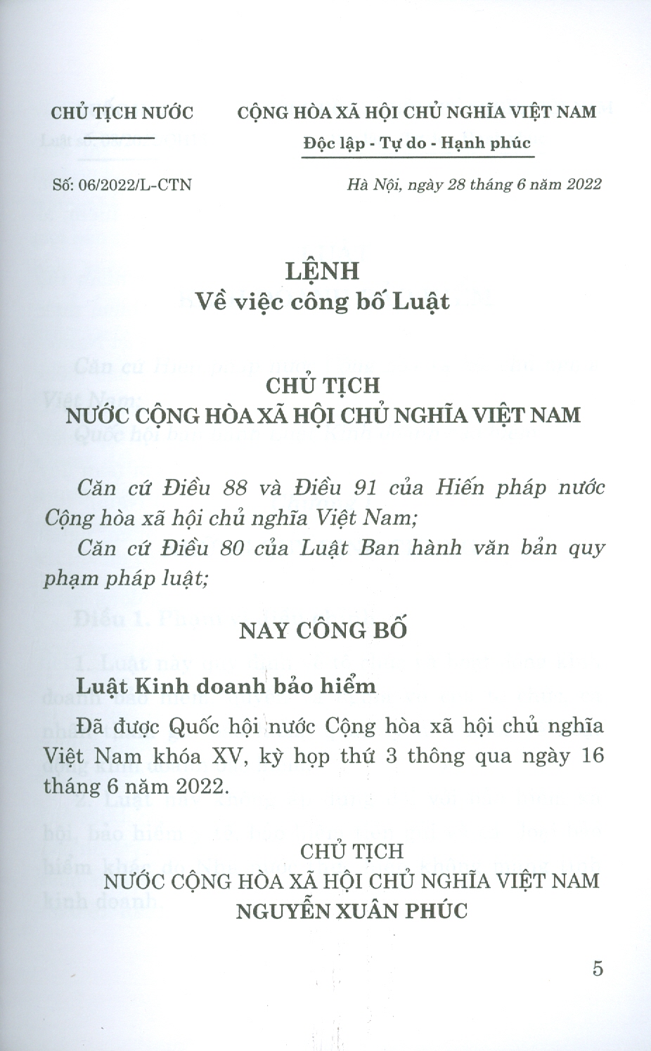 Luật Kinh Doanh Bảo Hiểm số 08/2022/Qh15 đã được Quốc Hội thông qua ngày 16 tháng 6 năm 2022 ( Luật này có hiệu lực từ ngày 01 -01 -2023)