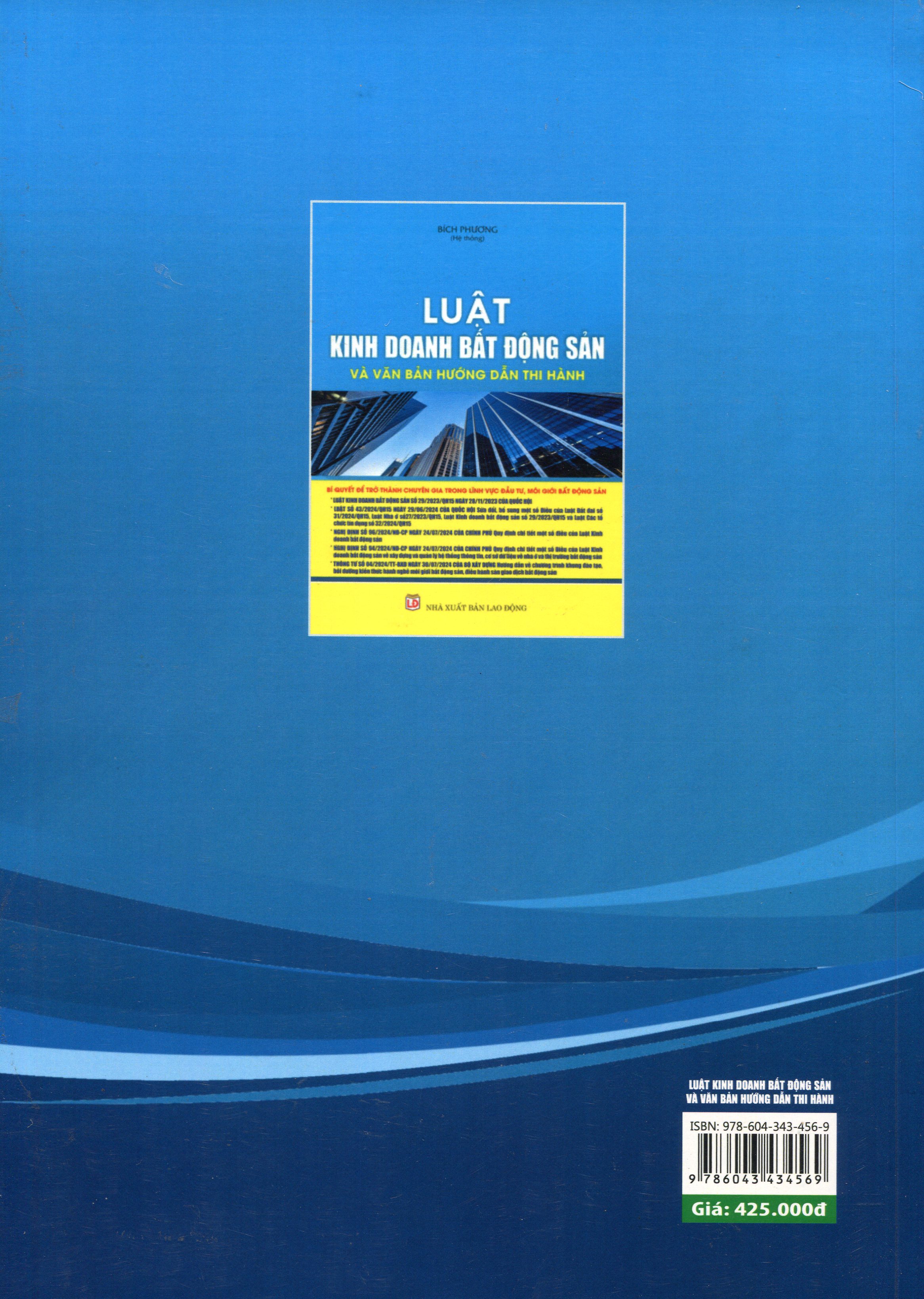 Ngày 28/11/2023 tại Kỳ họp thứ 6, Quốc hội khóa XV thông qua Luật Kinh doanh bất động sản 2023 gồm 10 Chương, 83 Điều. Luật chính thức có hiệu lực thi hành từ ngày 01/08/2024. Luật Kinh doanh bất động sản năm 2023 được kỳ vọng sẽ mang đến sự chuyển biến tích cực cho thị trường bất động sản Việt Nam. Để sớm đưa Luật Kinh doanh bất động sản vào cuộc sống, vừa qua Chính phủ, bộ ngành đã ban hành nghị định, thông tư hướng dẫn thi hành Luật như Nghị định 96/2024/NĐ-CP ngày 24/07/2024 Quy định chi tiết một số điều của Luật Kinh doanh bất động sản, Nghị định 94/2024/NĐ-CP ngày 24/07/2024 Quy định chi tiết một số điều của Luật Kinh doanh bất động sản về xây dựng và quản lý hệ thống thông tin, cơ sở dữ liệu về nhà ở và thị trường bất động sản, Thông tư 04/2024/TT-BXD ngày 30/07/2024 Hướng dẫn về chương trình khung đào tạo, bồi dưỡng kiến thức hành nghề môi giới bất động sản, điều hành sàn giao dịch bất động sản.. Nhằm góp phần phổ biến những kiến thức pháp luật về bất động sản, nhà ở cho các cá nhân, doanh nghiệp để thực thi đúng chính sách, pháp luật trong giao dịch, môi giới, đầu tư kinh doanh, Nhà xuất bản Lao Động xuất bản và phát hành cuốn sách: LUẬT KINH DOANH BẤT ĐỘNG SẢN VÀ VĂN BẢN HƯỚNG DẪN THI HÀNH LUẬT Nội dung cuốn sách gồm các phần chính sau: Phần thứ nhất. LUẬT KINH DOANH BẤT ĐỘNG SẢN Phần thứ hai. VĂN BẢN HƯỚNG DẪN THI HÀNH LUẬT KINH DOANH BẤT ĐỘNG SẢN Phần thứ ba. CHIẾN LƯỢC, BÍ QUYẾT ĐỂ TRỞ THÀNH CHUYÊN GIA TRONG LĨNH VỰC ĐẦU TƯ, MÔI GIỚI BẤT ĐỘNG SẢN Quyển sách trong quá trình hệ thống cũng khó tránh khỏi những thiếu sót, kính mong độc giả góp ý, để lần tái bản sau được hoàn thiện hơn. Sách có độ dày 424 trang, giá phát hành 425,000đ/1 quyển Trân trọng giới thiệu cùng bạn đọc. Quyển sách trong quá trình hệ thống cũng khó tránh khỏi những thiếu sót, kính mong độc giả góp ý, để lần tái bản sau được hoàn thiện hơn. Trân trọng giới thiệu cùng bạn đọc.