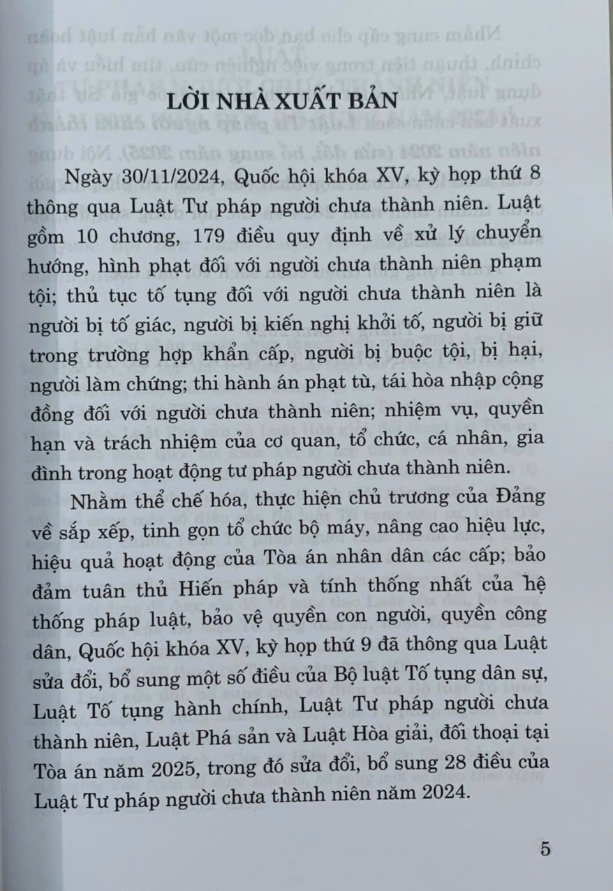 Sách- Luật Tư pháp người chưa thành niên năm 2024 (sửa đổi, bổ sung năm 2025)