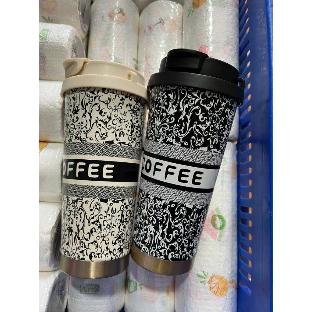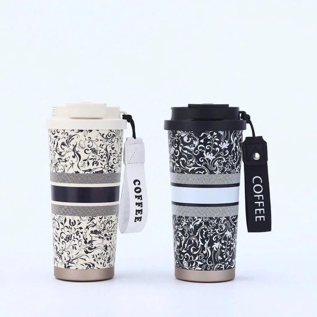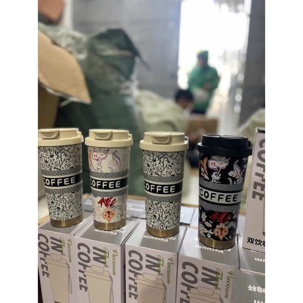 Mua tại TiktokLy, cốc giữ nhiệt Coffee Linh Chi Bedding Họa tiết sang trọng 500ml kèm ống hút
