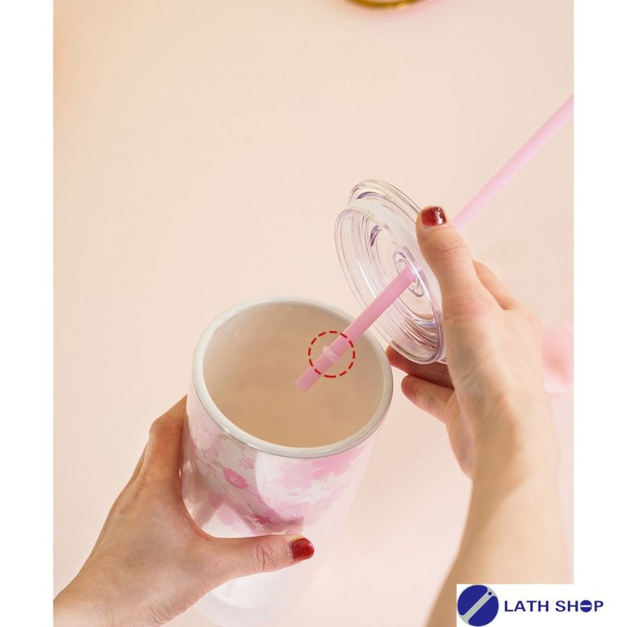 ✨Ly Nhựa 2 Lớp Cherry Blossom Kèm Ống Hút LocknLock Dung Tích 750ML - HAP509 -Màu Trắng và Hồng
