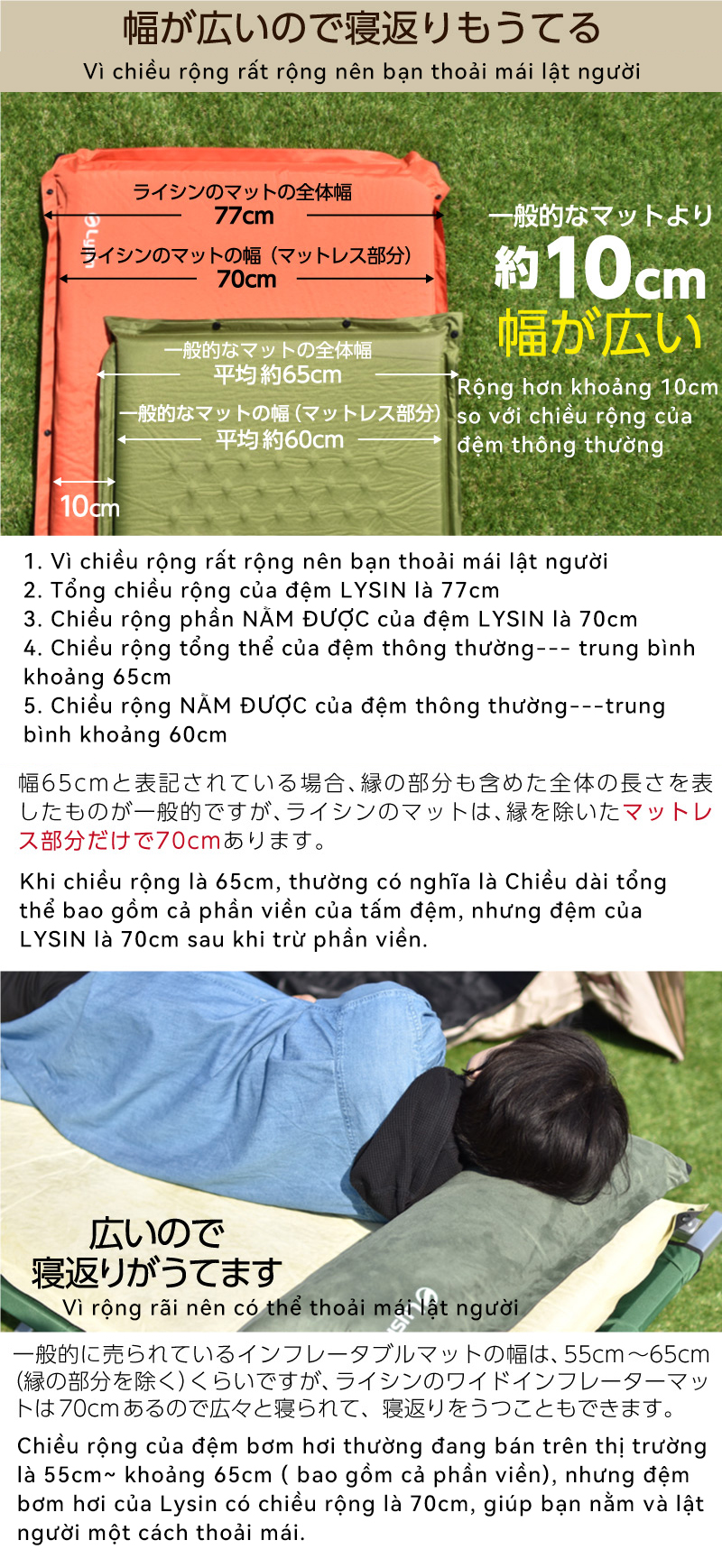 ✨Lysin - đệm nằm dã ngoại (roonjgcm dày 8cm, chất liệu da lộn) tự bơm hơi thoảng mái chống thấm nước cắm trại ngoài trời, picnic du lịch camping có thể liên kết với nhau