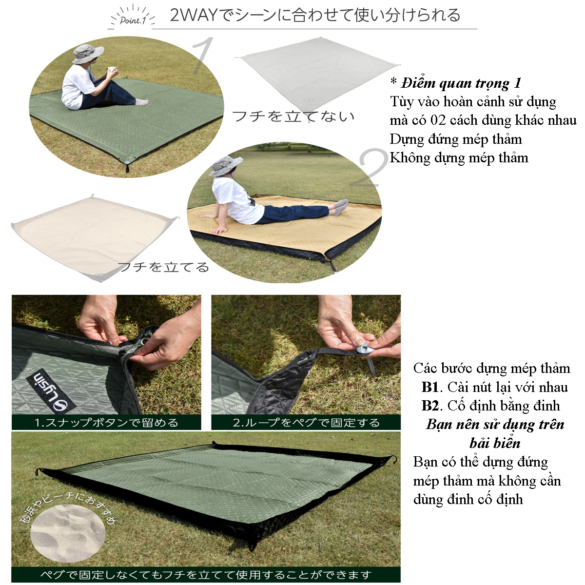 ✨Lysin - thảm lót dã ngoại ngoài trời camping cắm trại du lịch, picnic, ngăn côn trùng, ngăn dị vật, chắn gió