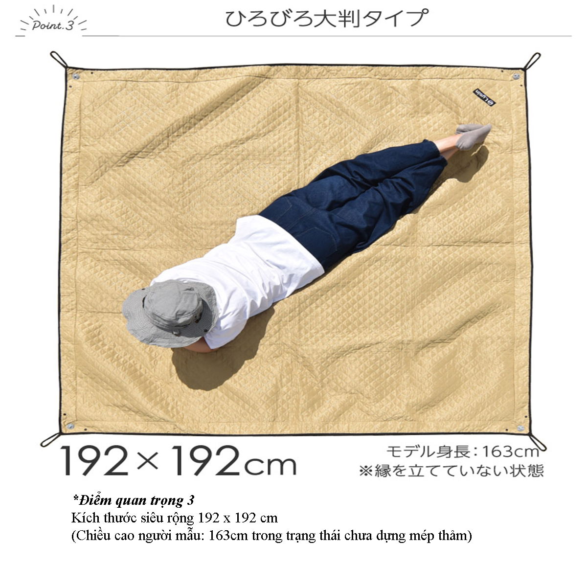 Kèm theo chiếc túi vải hoặc túi Zip tiện lợi (RIÊNG KÍCH CỠ 100x100cm KHÔNG KÈM TÚI) - Thông tin cơ bản: Tấm trải du lịch cách nhiệt chống nước - Chất liệu chính : XPE,