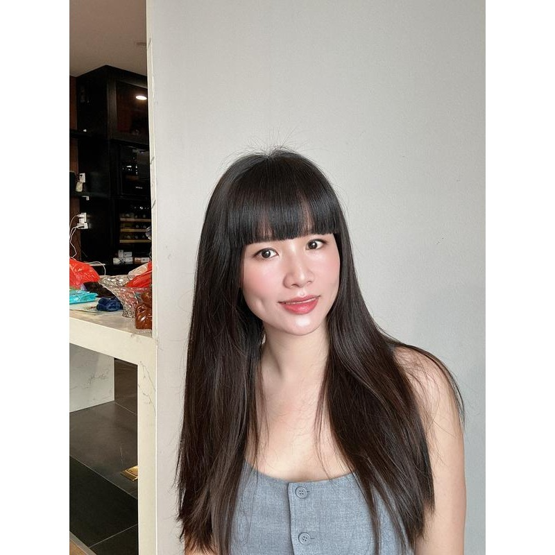 THÔNG TIN SẢN PHẨM: Loại: Mái Hime mái dày Chất liệu: Tóc th.ậ t 100% Uốn, Ép, Nhuộm đều được. Màu sắc: Màu nâu trầm, Màu nâu socola, Màu nâu sáng, Màu