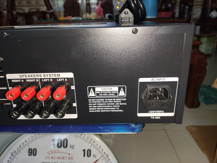 + Mặt sau của thiết bị là hệ thống các đường kết nối tín hiệu âm thanh vào và ra, các cổng kết nối thông dụng của thiết bị âm thanh và một số thông tin kỹ thuật cơ bản khác.
