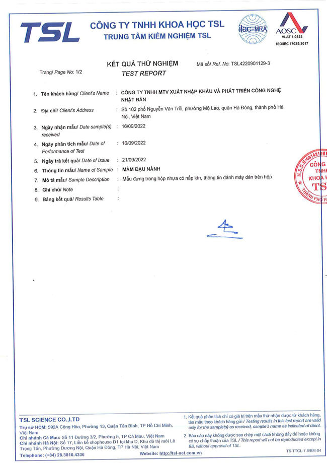 - 100% Mầm đậu nành tự nhiên.