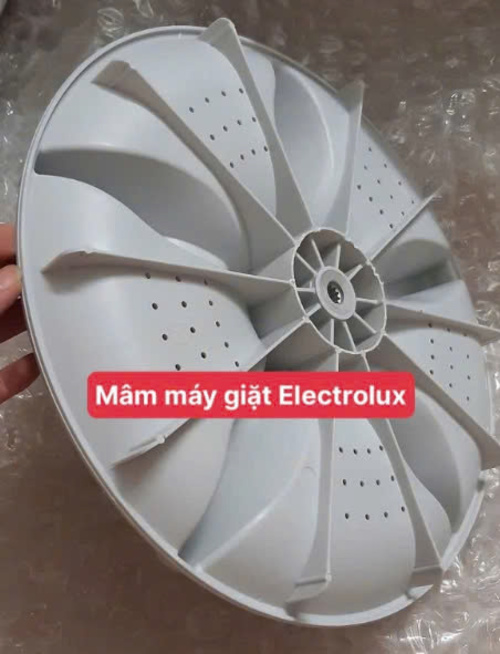 Mâm giặt sử dụng thay thế cho nhiều model máy giặt cửa trên lồng đứng Electrolux Hàng mới 100% - Hàng chính hãng Kích thước: Đường kính 35.5cm Chất liệu: nhựa cao cấp Màu: ghi