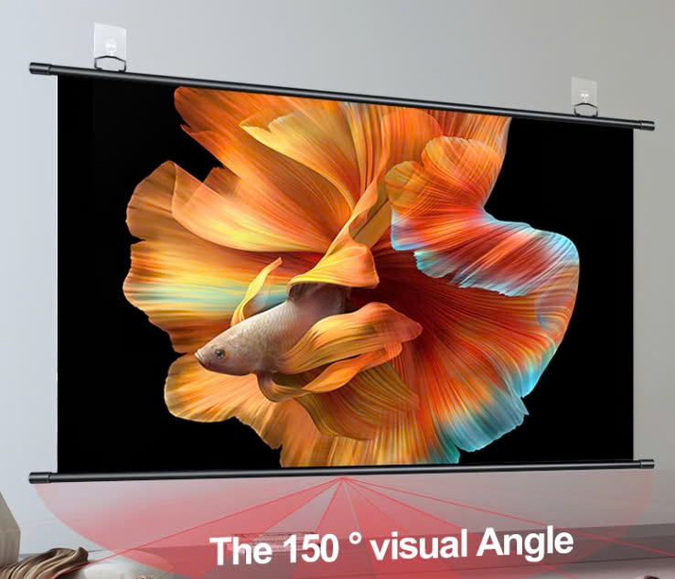- 100 inch Kích thước 216 x 122cm Dài hộp 229cm Thiết kế tối giản, gọn nhẹ, dễ dàng lắp đặt bằng móc treo, tiện lợi cuộn lên – thả xuống bằng tay. Linh hoạt sử dụng cho nhiều không gian: phòng khách, lớp học, văn phòng nhỏ, sân vườn,... Có tặng kèm 2 bộ móc treo như hình (Để ở đầu màn có đánh dấu) Kết hợp hoàn hảo với máy chiếu mini cho nhu cầu giải trí tại gia, học tập hay trình chiếu nhóm nhỏ. Chất liệu cao cấp: Vải trắng 3 lớp matte white giúp hình ảnh rõ nét, hỗ trợ nội dung 2D, 3D, Full HD đến 4K. Mặt sau phủ PVC đen giúp chống xuyên sáng, tăng độ tương phản, tái hiện màu sắc trung thực, sắc nét. Góc nhìn rộng đến 150° – cho hình ảnh đồng đều dù ngồi ở vị trí nào. Phù hợp nhiều nhu cầu khác nhau Bảo hành 1 năm chính hãng